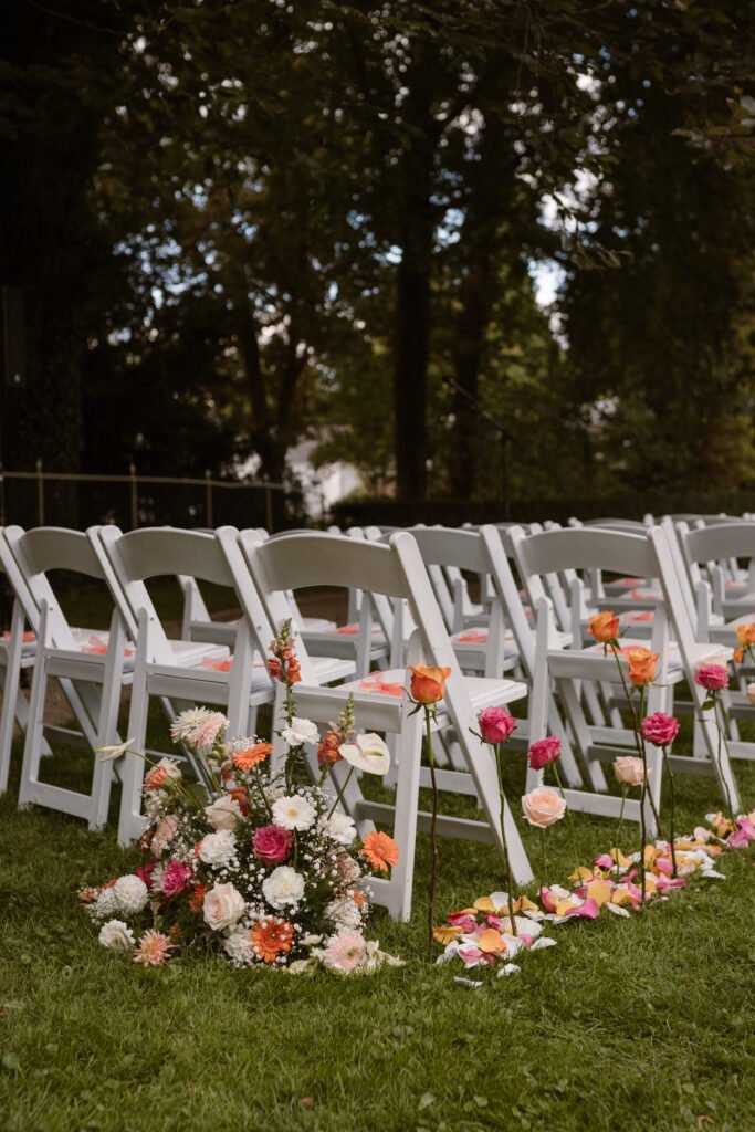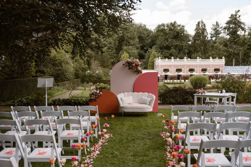 Een kleurrijke zomerbruiloft vol warmte en energie. Met levendige styling, speels bloemwerk en verfijnd drukwerk creëerden we voor Alicia en Henko een dag die straalde in lichtroze, donkerroze en oranje tinten.